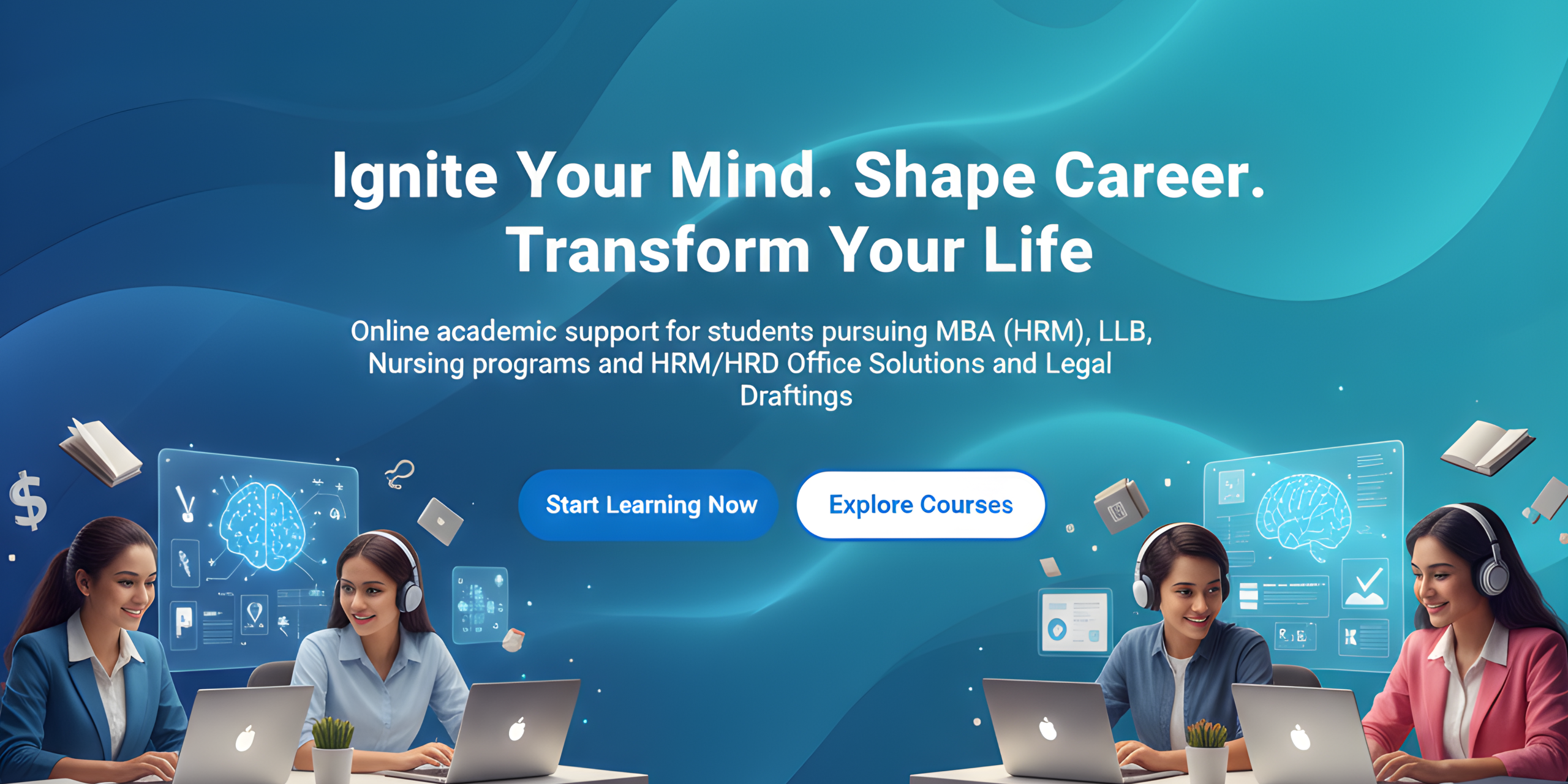 At Doon TejasMind, we specialize in online academic coaching for students already pursuing MBA (HRM), LLB, and Nursing (BSc | MSc | GNM) in colleges and universities across India.